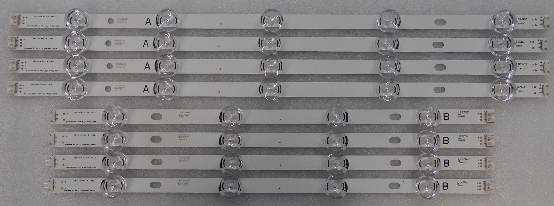 9 Diodes size:97.8 cm 1set=4x(A+B),4x(led26+led27), DRT 3.0 47" INCH , LC470DUH-FGP1 LC470DUH-FGP2 (FG) (P1) (P2) 6916L-1780A/6916L-1779A, 6916L-1948A/6916L-1949A, 6916L-1961A/6916L-1962A, 6916L-1715A/6916L-1716A Panel:LC470DUE-FGA4, LC470DUE-FGA1, LC470DUE-FGA2, LC470DUE-FGA3, LC470DUE-FGA6, LC470DUE-FGM1, LC470DUE-FGM2, LC470DUE-FGM3, LC470DUE-FGM4